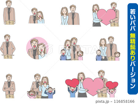 Smile_笑顔の人_若いファミリー_背景ハートあり