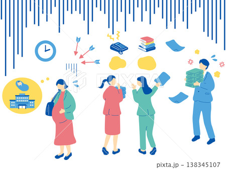 オフィスで働く妊婦のビジネスウーマンイラスト