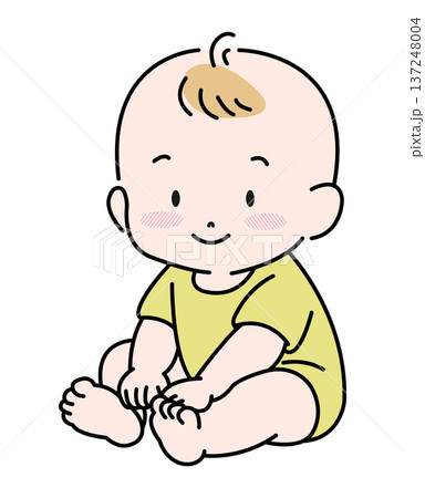 男女共に性別の区別がない乳幼児が座っている全身イラスト