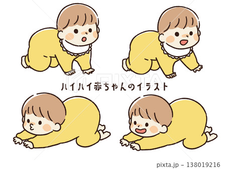 ハイハイ期の赤ちゃん全身イラストセット(ピンク)