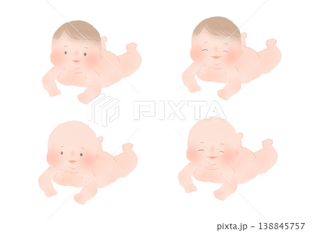 水彩で描いたハイハイや遊ぶポーズの赤ちゃんセット
