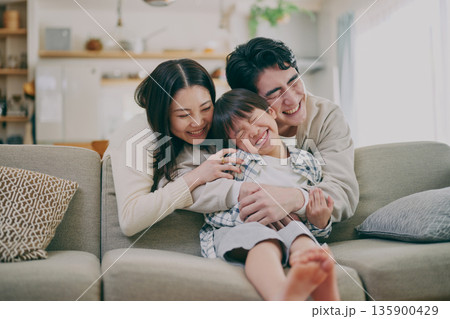 リビングのソファでくつろぐ仲良し家族