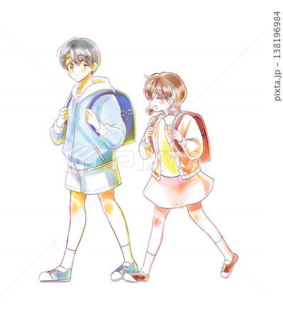 並んで歩く男女の児童