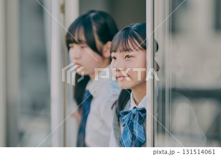 窓の外を眺める女子中学生たち