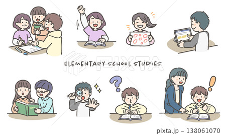 小学生の男女、授業・勉強・掃除など学校生活のイラスト6種セット