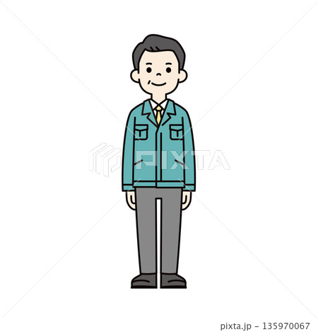 作業着を着た、シニア世代の工場長・中小企業の社長・経営者の上半身ベクターイラスト素材