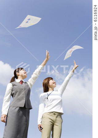 書類を投げた制服姿のOLとビジネスウーマン