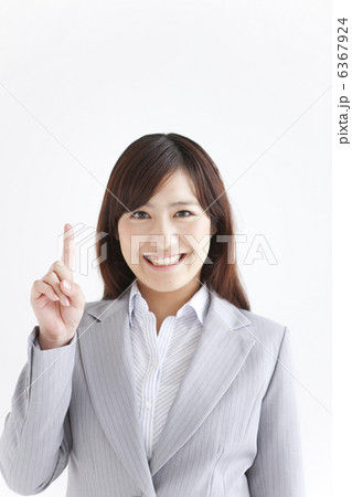 指を立てる笑顔のビジネスウーマン