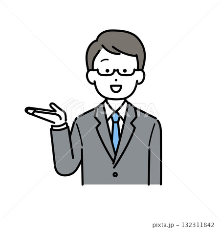案内するスーツ姿の男性のイラスト