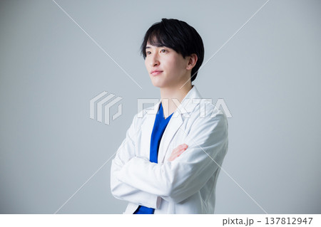 白衣を着た若い男性