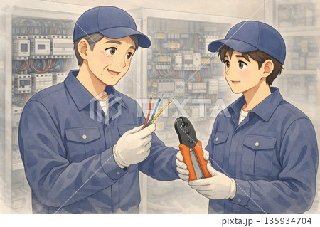 2人の作業服の男性