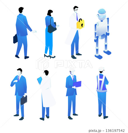 DX推進・ビジネス・研究者・作業員とロボットのアイソメトリック人物素材