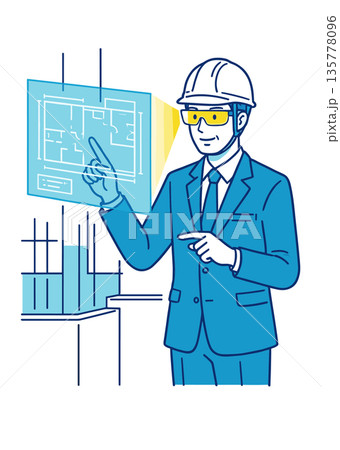 スマートグラスで業務確認を行う現場監督者(AR・建設現場・点検)のイラスト