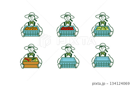 たくさんの野菜を抱えた農家さん 手描きベクターイラスト