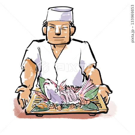 サムズアップのポーズをする割烹の職人・板前さんのイラスト