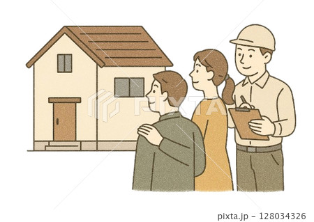 家の打ち合わせで現地調査をしている夫婦と建築士