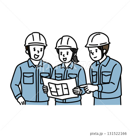ミーティングや話し合いをする建設業、製造関係のイラスト