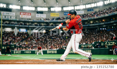 ドーム球場ホームランを打つ野球選手