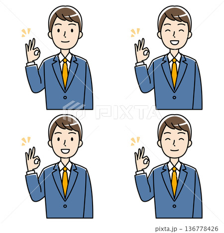 笑顔でOKサインをするスーツの若い男性(カラー)