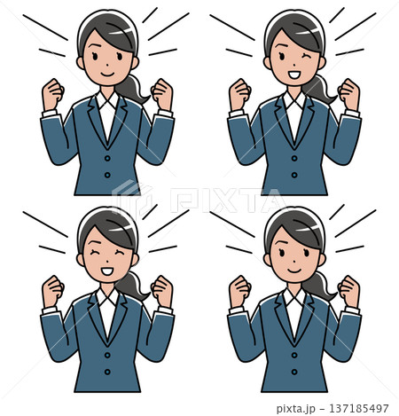 笑顔でOKサインをするスーツの若い女性のイラスト