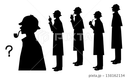 シャーロック・ホームズのような探偵シルエット、少し顔を上げているポーズセット、左向き