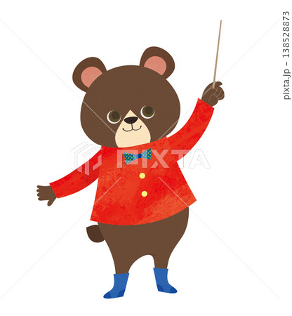 冬の音楽会で指揮をするクマ|サンタ帽のかわいい指揮者イラスト