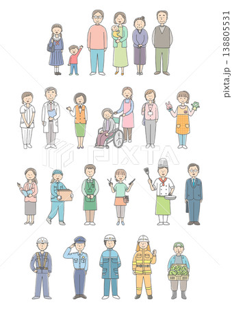 さまざまな職業の人々セット 多世代・多様な働く人物イラスト