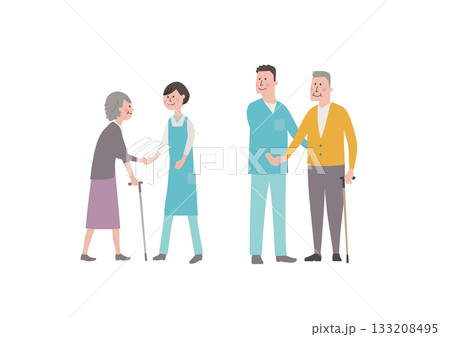 医療従事者と高齢者の全身イラスト