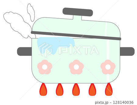 ガスコンロを使って、やかんで湯を沸かすベクターイラスト
