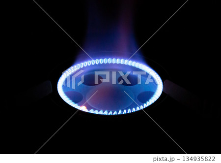 ガスコンロの青色の炎 コピースペース