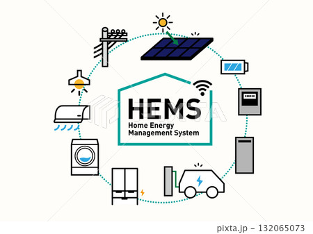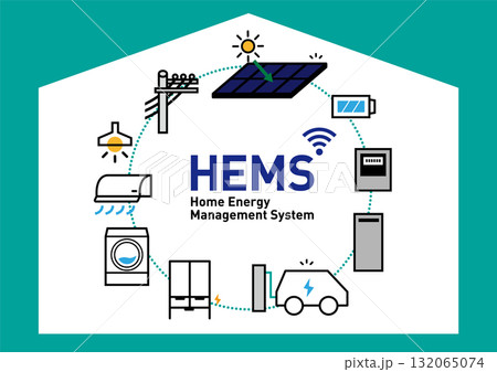 HEMS スマートハウス|電力見える化の住宅のイラスト、ベクター