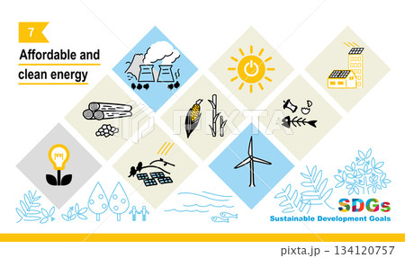SDGs7 クリーンなエネルギーで新しい未来を作る 脱炭素化社会を目指すイラスト