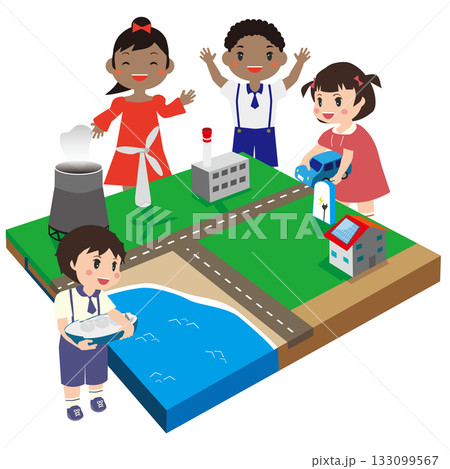 SDGs7 クリーンなエネルギーで新しい未来を作る 脱炭素化社会を目指すイラスト