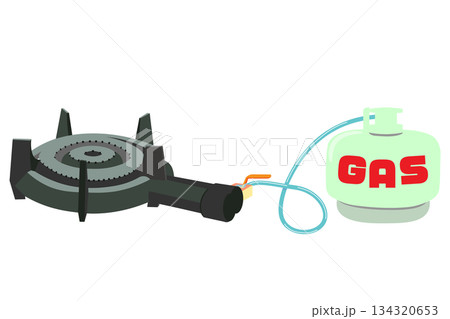 鋳物コンロにガスボンベをつないだ【閉】の状態のイラスト