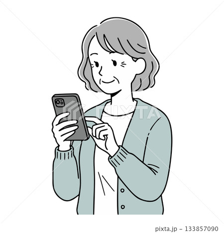 スマホでAIを活用するオフィスカジュアルのビジネスパーソン(手書き風)2.