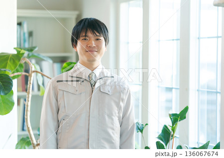 東住吉区のブロックと作業着を着たミドル男性ビジネスマン