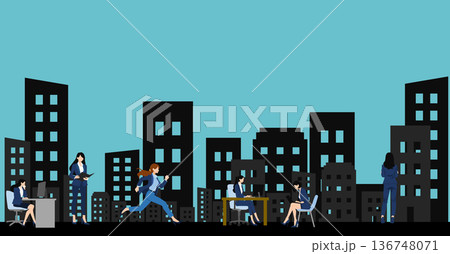 街並みと人々のライフスタイルのベクターイラスト 背景素材 パノラマ