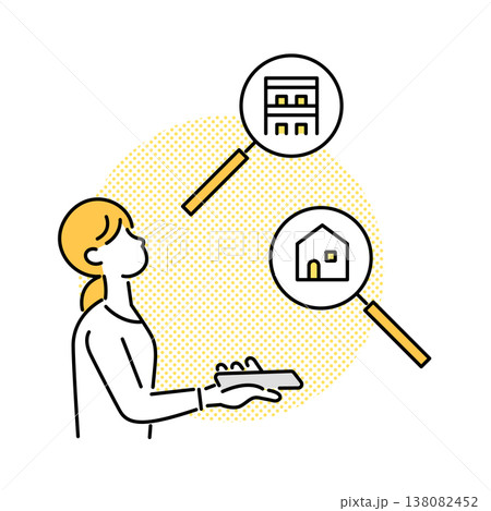 戸建てと集合住宅の違いを比較する、スーツ姿の女性のイラスト