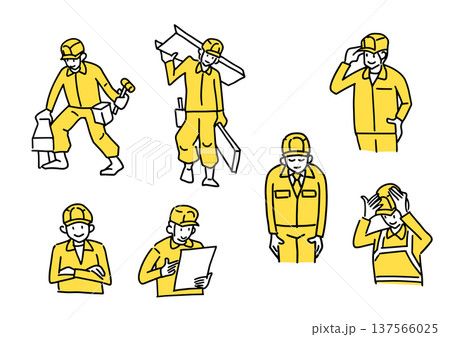 ヘルメットと作業服の男性ポーズセット工事現場や製造業の素材