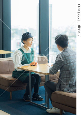 女性が面接で話す