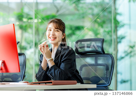 オフィスでパソコンを使って仕事する外国人女性
