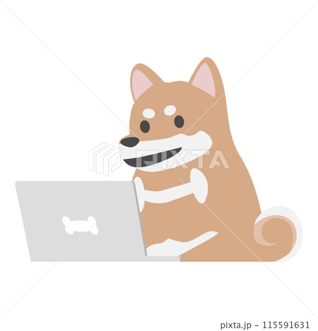 パソコンを使用する柴犬2