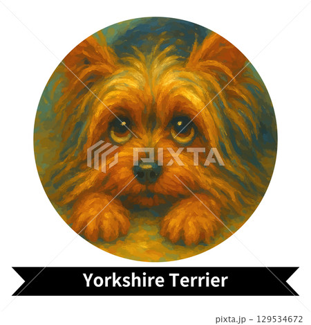 ヨークシャー・テリアの犬ポートレート - かわいいペットの油絵風画像