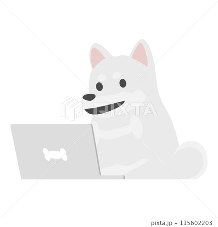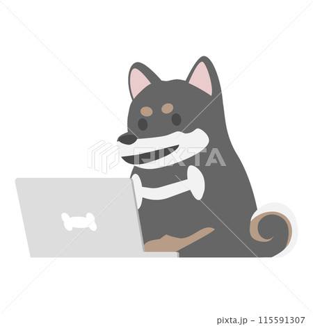 パソコンを使用する黒柴