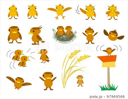 シンプルでかわいいスズメの家族のしぐさ集