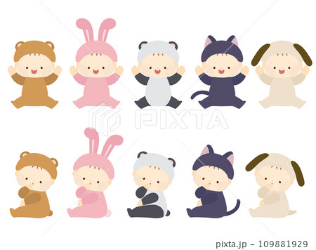 動物にコスプレした赤ちゃんのイラスト