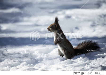 雪景色の中のエゾリス