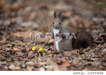 早春のエゾリスの森