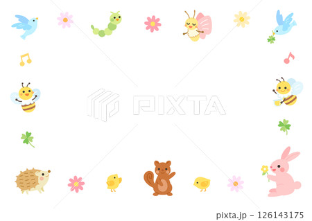 春のかわいい動物フレーム 入学 入園 卒園 かわいい配色 パステル