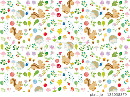 「秋の森の動物たち(リス・フクロウ・ハリネズミ) / Woodland Animals in Aut